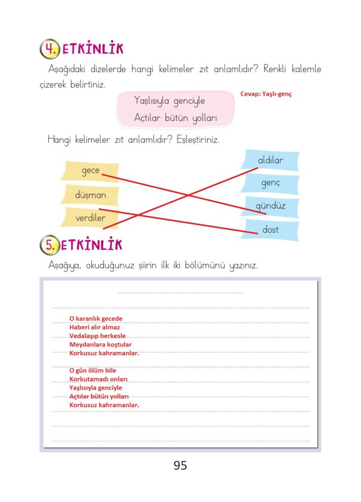 2. sınıf türkçe ders kitabı ada matbaacılık yayıncılık sayfa 95 cevap anahtarı 2022-2023 sayfa olarak çözümlerini yanıtları sizler için aşağıda sunduk. 2025-2026 ada matbaacılık yayıncılık türkçe ders kitabı cevapları yine sitemizde olacak.