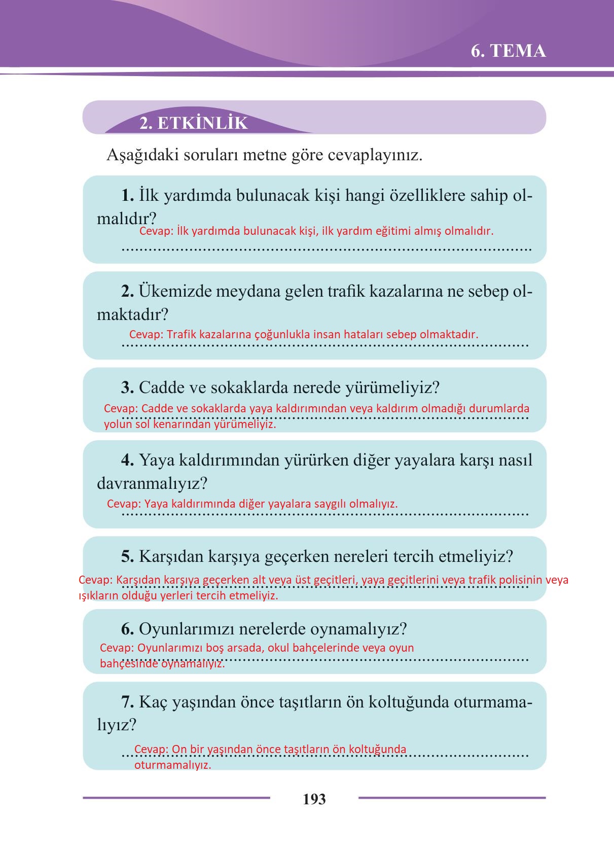 2. Sınıf Türkçe Ders Kitabı Bilim ve Kültür Yayınları Sayfa 193 Cevapları