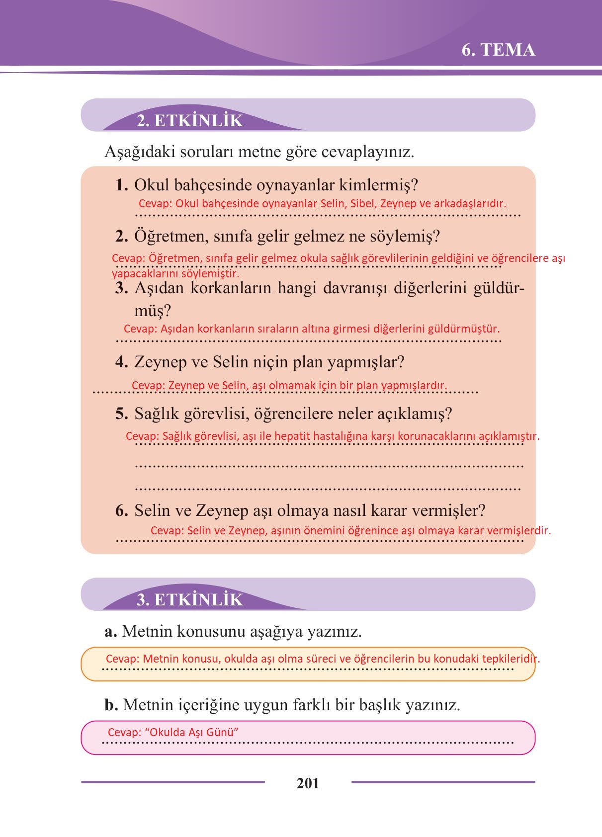 2. Sınıf Türkçe Ders Kitabı Bilim ve Kültür Yayınları Sayfa 201 Cevapları