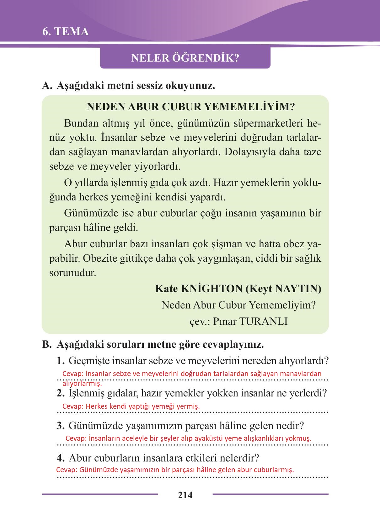 2. Sınıf Türkçe Ders Kitabı Bilim ve Kültür Yayınları Sayfa 214 Cevapları
