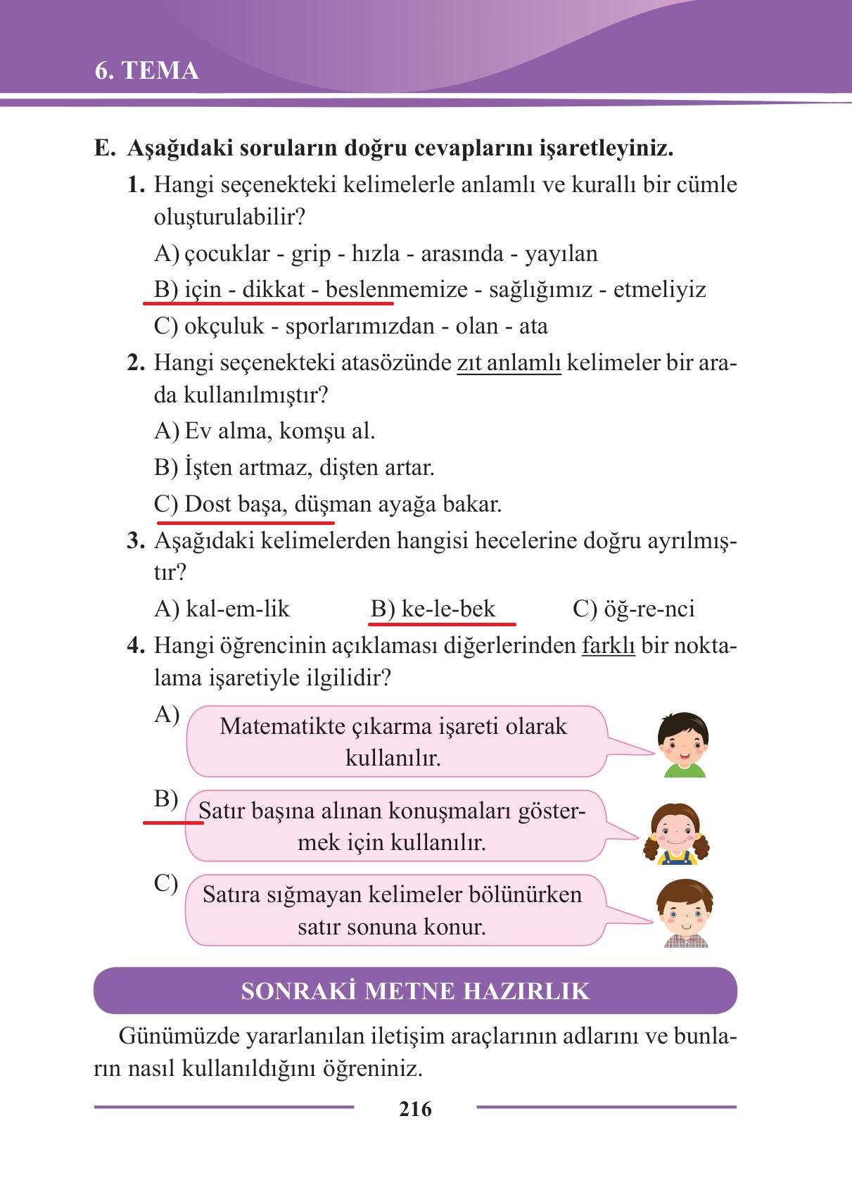 2. Sınıf Türkçe Ders Kitabı Bilim ve Kültür Yayınları Sayfa 216 Cevapları
