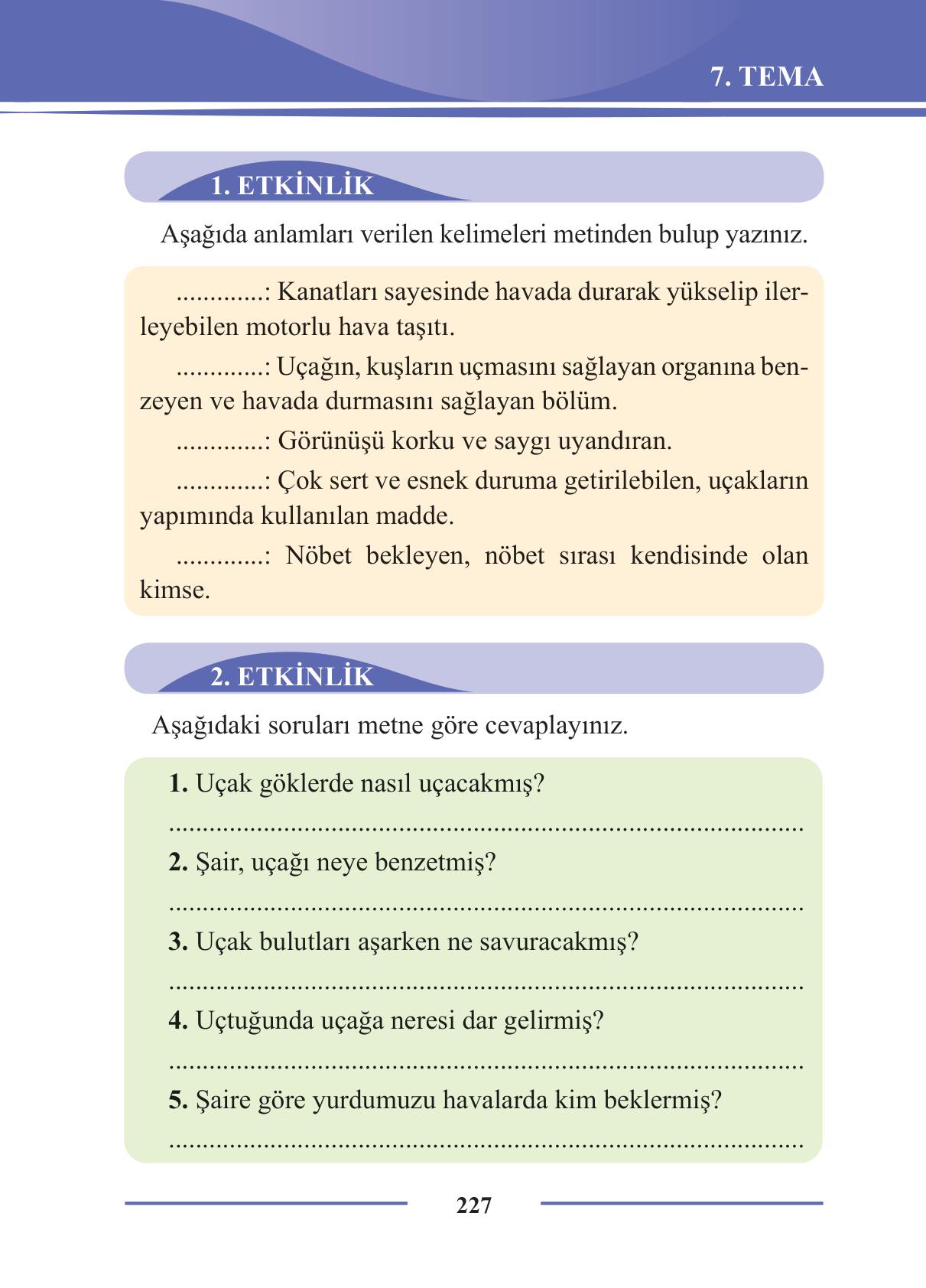 2. Sınıf Türkçe Ders Kitabı Bilim ve Kültür Yayınları Sayfa 227 Cevapları