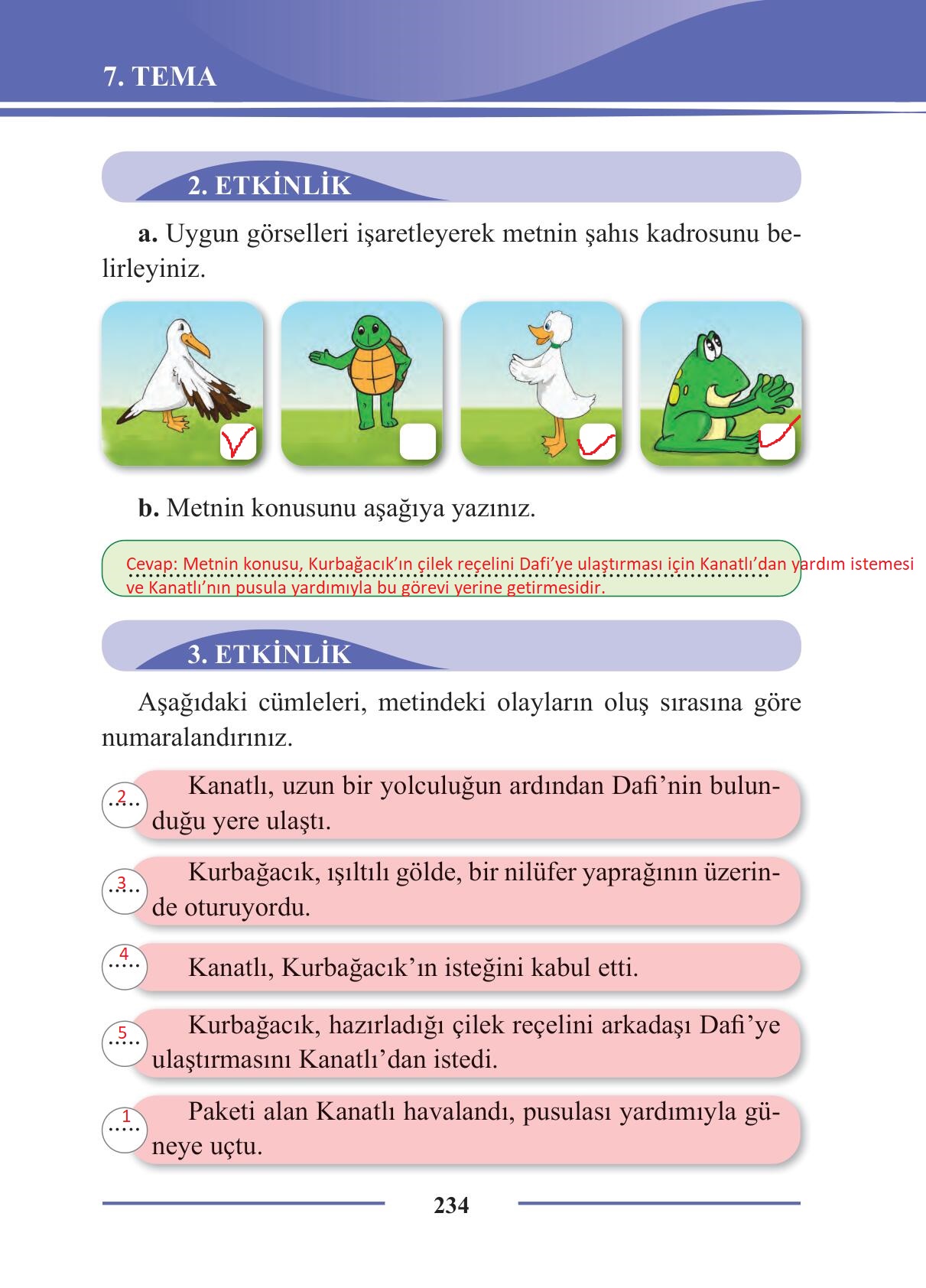 2. Sınıf Türkçe Ders Kitabı Bilim ve Kültür Yayınları Sayfa 234 Cevapları