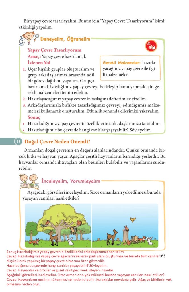 3. Sınıf Fen Bilimleri Ders Kitabı Tuna Yayınları Sayfa 165 Cevapları