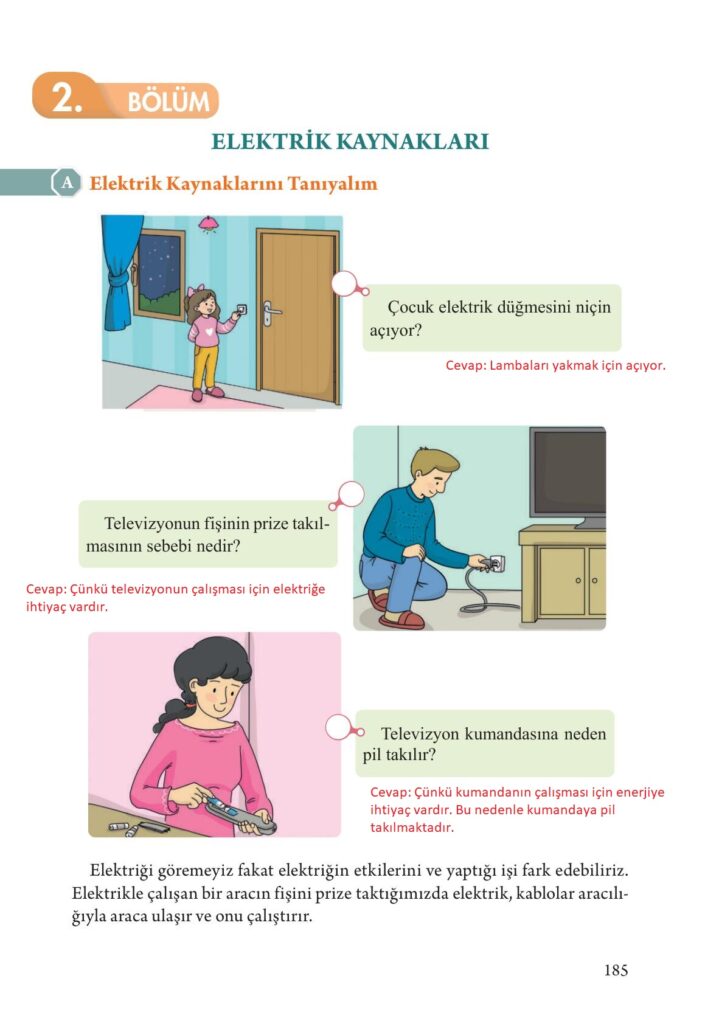 3. Sınıf Fen Bilimleri Ders Kitabı Tuna Yayınları Sayfa 185 Cevapları