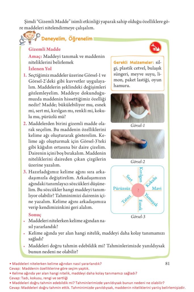 3. Sınıf Fen Bilimleri Ders Kitabı Tuna Yayınları Sayfa 81 Cevapları