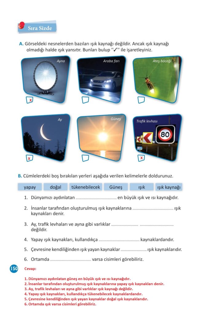 3. Sınıf Fen Bilimleri Meb Yayınları Sayfa 150 Cevapları / Cevabı