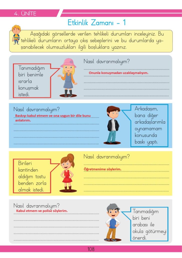 3. Sınıf Hayat Bilgisi Meb Yayınları Sayfa 108 Cevapları / Cevabı