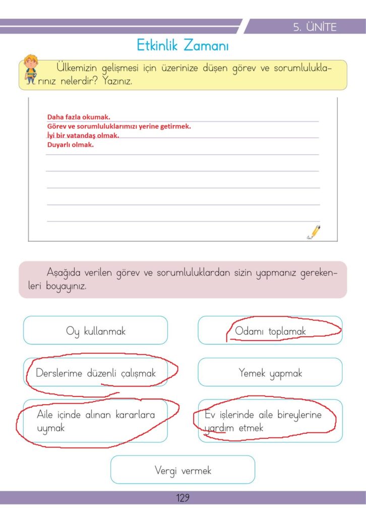 3. Sınıf Hayat Bilgisi Meb Yayınları Sayfa 129 Cevapları / Cevabı