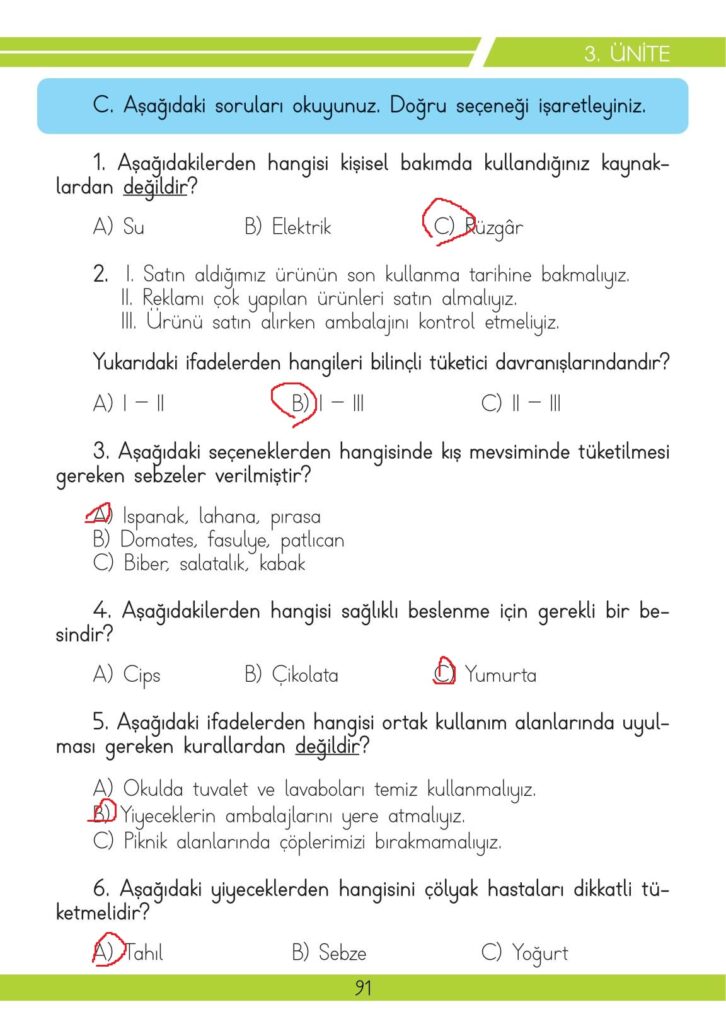 3. Sınıf Hayat Bilgisi Meb Yayınları Sayfa 91 Cevapları / Cevabı