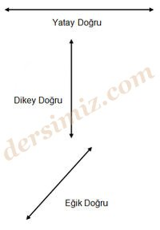 Doğrular yatay doğru, dikey doğru ve eğik doğru olmak üzere üç çeşittir.