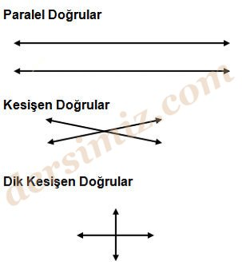 İki doğrunun durumu paralel, kesişen ve dik doğrular olabilir.