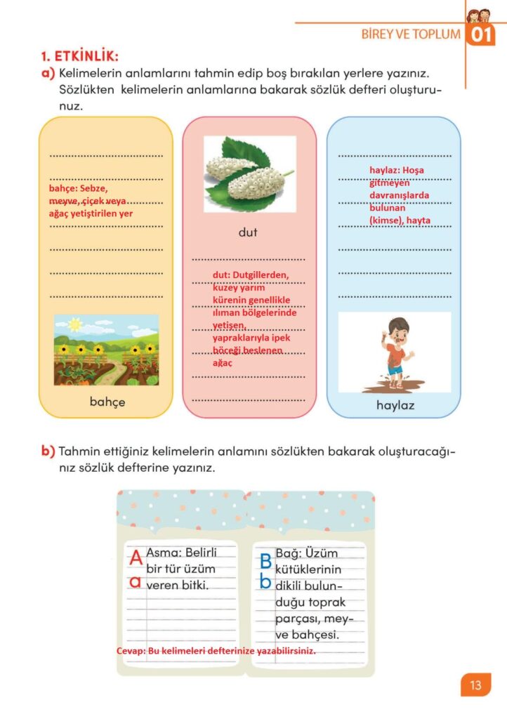 3. Sınıf Türkçe Meb Yayınları Sayfa 13 Cevapları / Cevabı