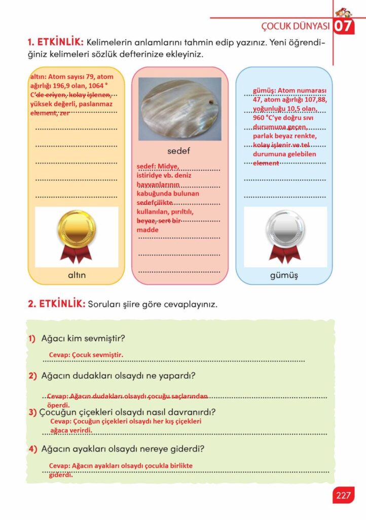 3. sınıf türkçe ders kitabı meb yayınları sayfa 227 cevap anahtarı 2023-2024 sayfa olarak çözümlerini yanıtları sizler için aşağıda sunduk. 2025-2026 meb yayınları türkçe ders kitabı cevapları yine sitemizde olacak.