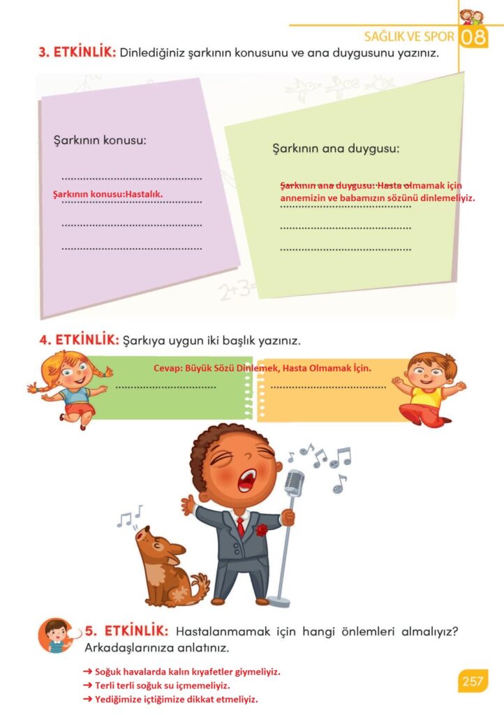 3. sınıf türkçe ders kitabı meb yayınları sayfa 257 cevap anahtarı 2023-2024 sayfa olarak çözümlerini yanıtları sizler için aşağıda sunduk. 2025-2026 meb yayınları türkçe ders kitabı cevapları yine sitemizde olacak.