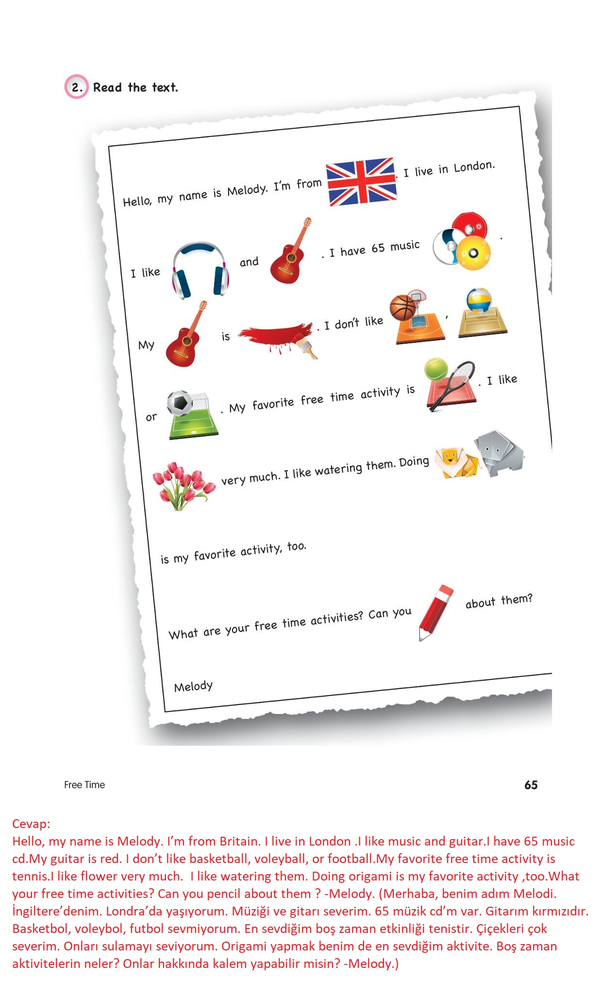 4. Sınıf İngilizce Ders Kitabı Sunshine Cem Yayınları Sayfa 65 Cevapları