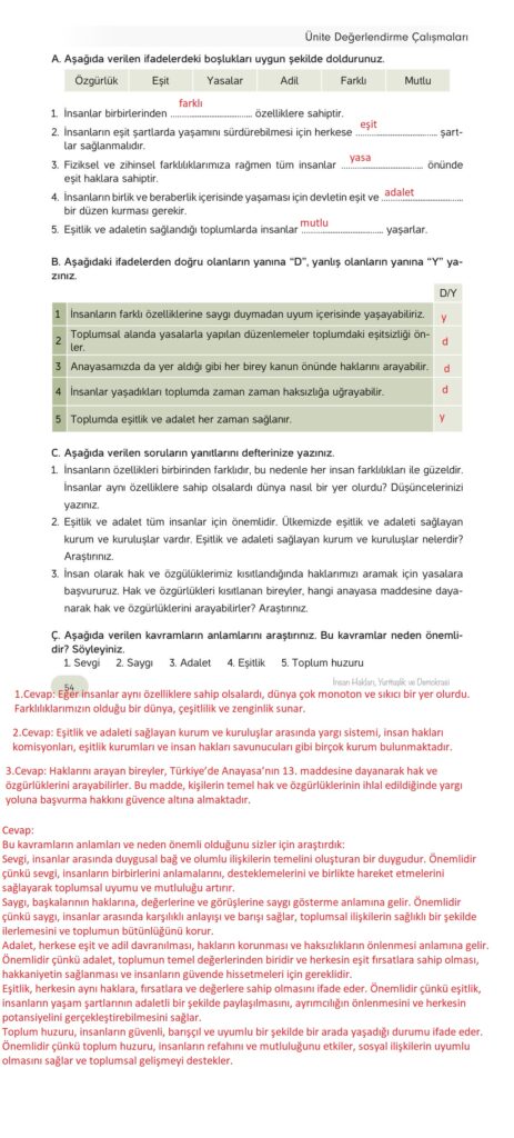 4.sınıf insan hakları, yurttaşlık ve demokrasi ders kitabı hecce yayıncılık sayfa 54 cevap anahtarı cevabı sayfa olarak çözümlerini yanıtları sizler için sunduk. Tüm ders kitabı cevapları gelecek yıl yine sitemizde olacak.