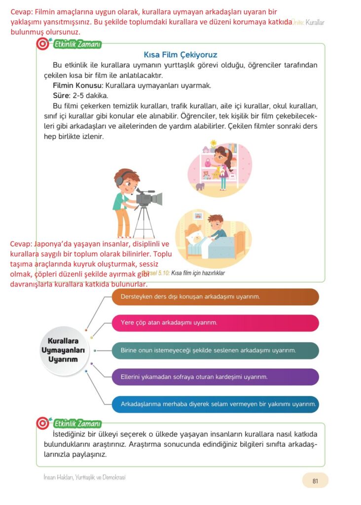 4.sınıf insan hakları, yurttaşlık ve demokrasi ders kitabı hecce yayıncılık sayfa 81 cevap anahtarı cevabı sayfa olarak çözümlerini yanıtları sizler için sunduk. Tüm ders kitabı cevapları gelecek yıl yine sitemizde olacak.