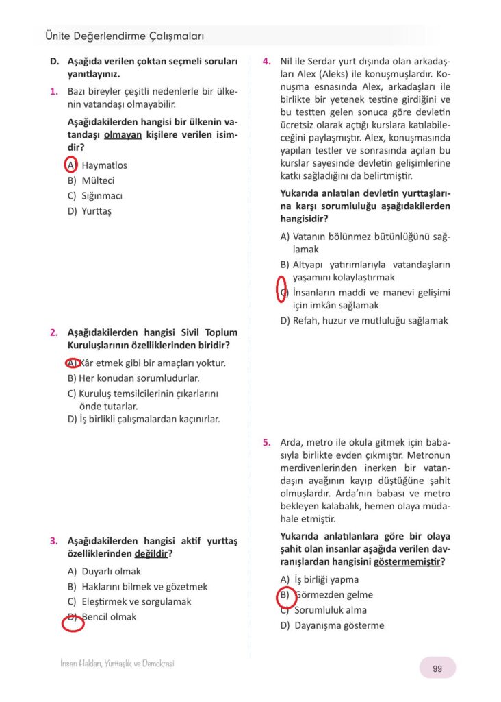 4.sınıf insan hakları, yurttaşlık ve demokrasi ders kitabı hecce yayıncılık sayfa 99 cevap anahtarı cevabı sayfa olarak çözümlerini yanıtları sizler için sunduk. Tüm ders kitabı cevapları gelecek yıl yine sitemizde olacak.