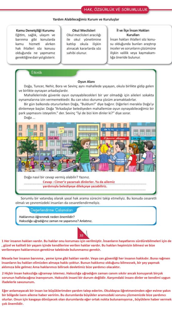 4. Sınıf İnsan Hakları Yurttaşlık ve Demokrasi Meb Yayınları Sayfa 35 Cevapları / Cevabı