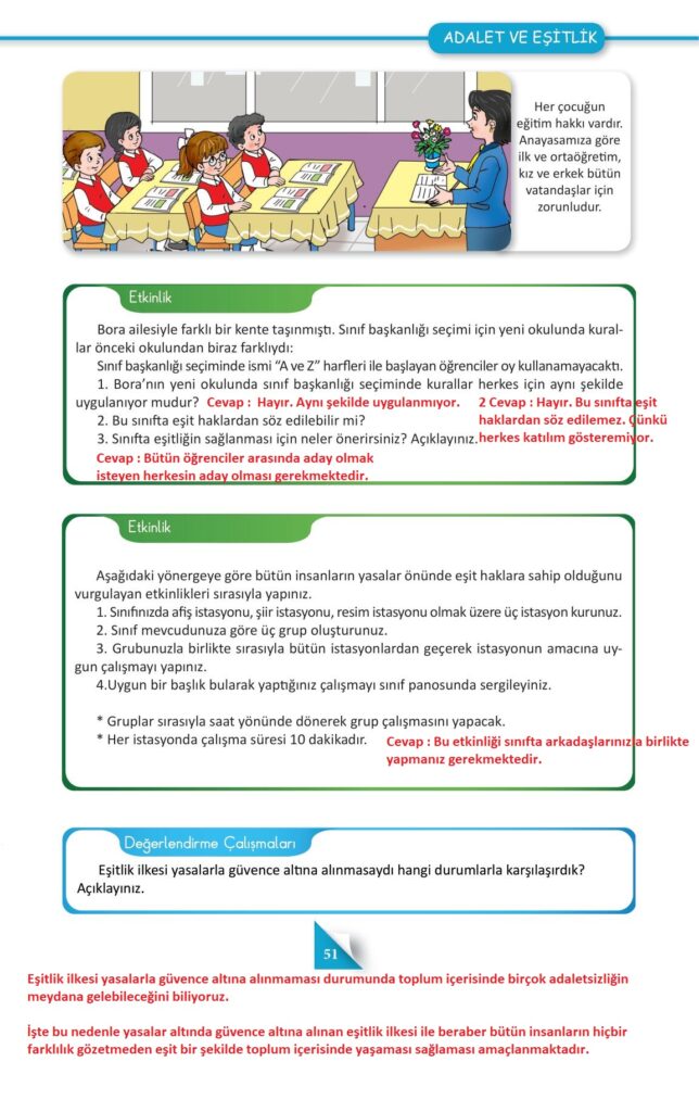 4. Sınıf İnsan Hakları Yurttaşlık ve Demokrasi Meb Yayınları Sayfa 51 Cevapları / Cevabı