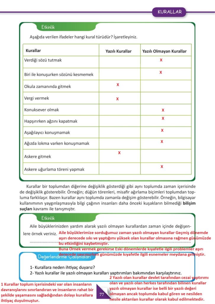4. Sınıf İnsan Hakları Yurttaşlık ve Demokrasi Meb Yayınları Sayfa 77 Cevapları / Cevabı
