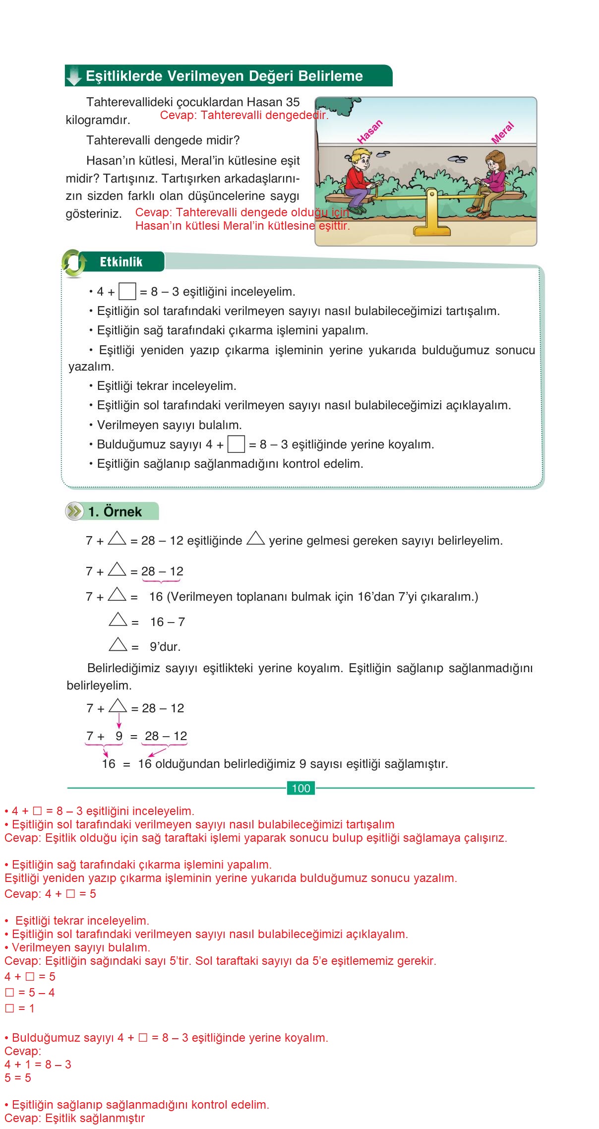 4. Sınıf Matematik Ders Kitabı Ada Yayınları Sayfa 100 Cevapları