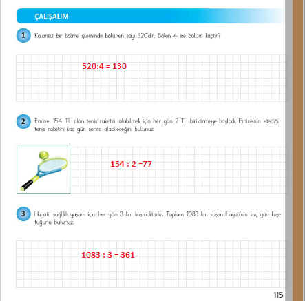 4. Sınıf Matematik Meb Yayınları Sayfa 115 Cevapları / Cevabı