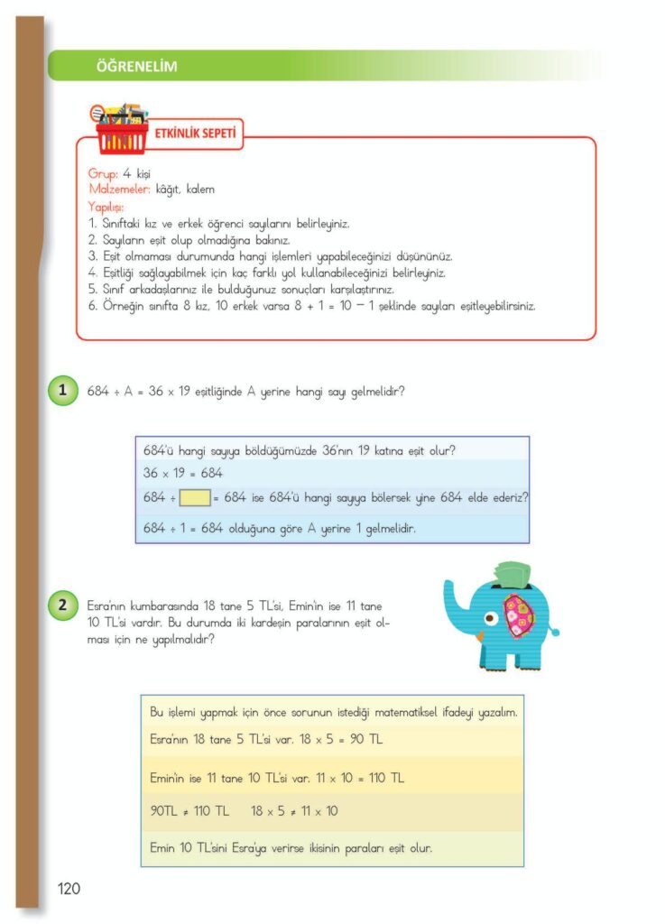 4. Sınıf Matematik Meb Yayınları Sayfa 120 Cevapları / Cevabı