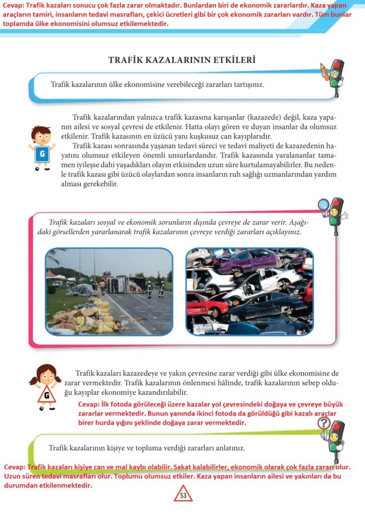 4. Sınıf Trafik Güvenliği Meb Yayınları Sayfa 53 Cevapları / Cevabı