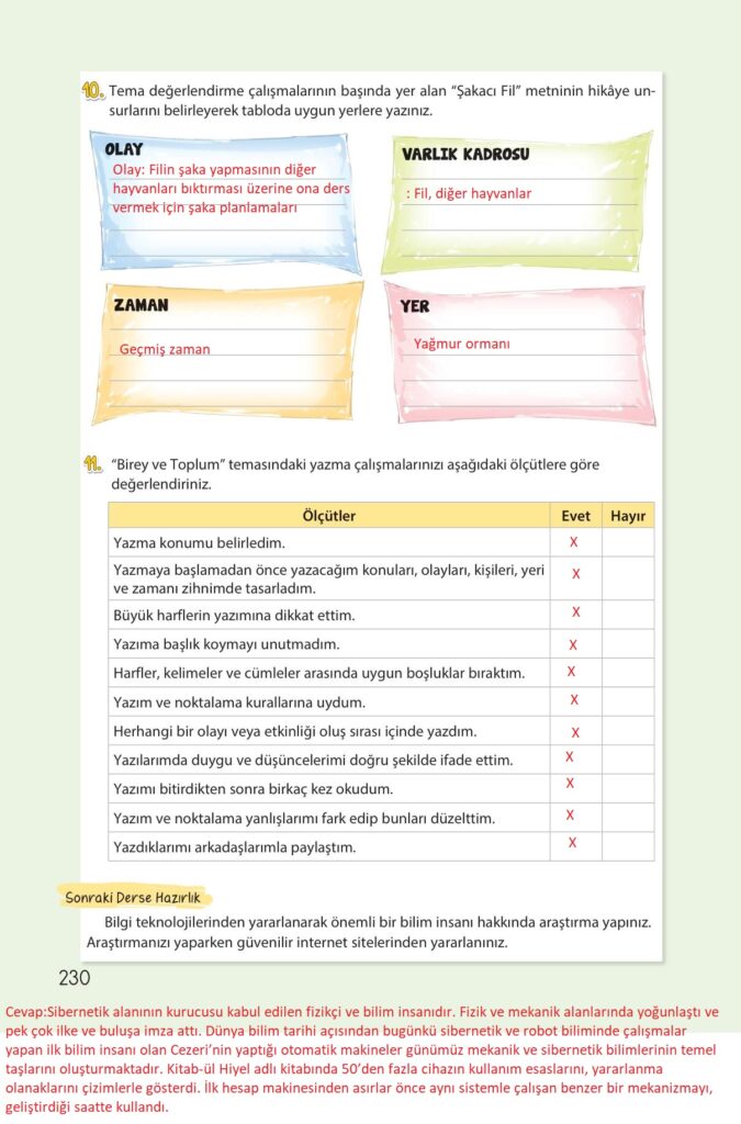 4. Sınıf Türkçe Ders Kitabı Koza Yayınları Sayfa 230 Cevapları