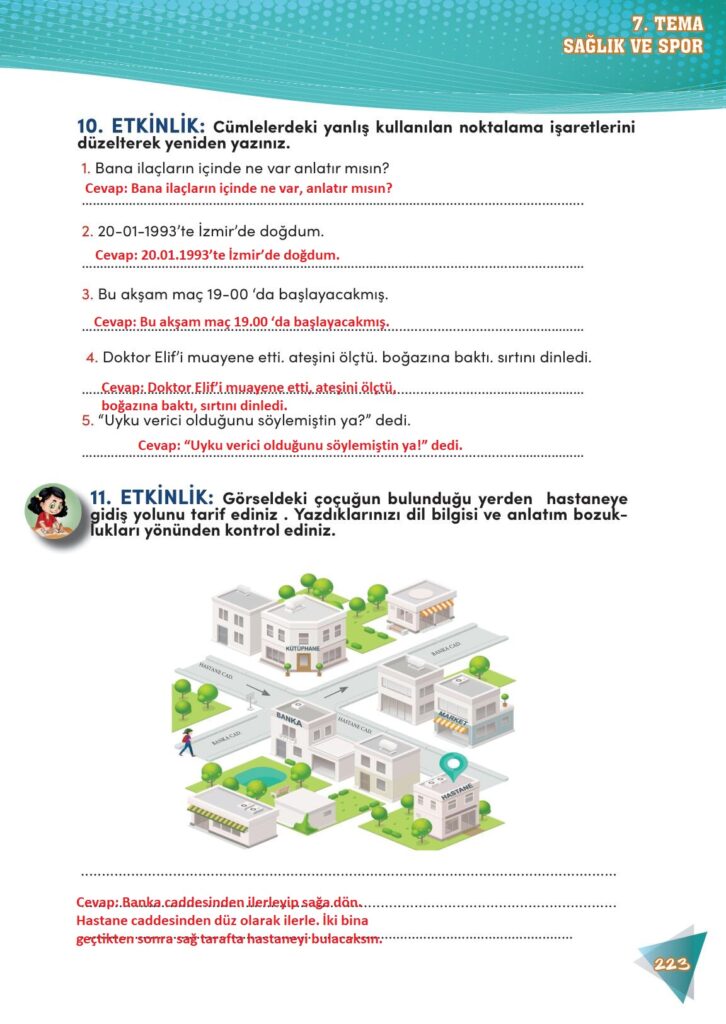 4. Sınıf Türkçe Meb Yayınları Sayfa 223 Cevapları / Cevabı