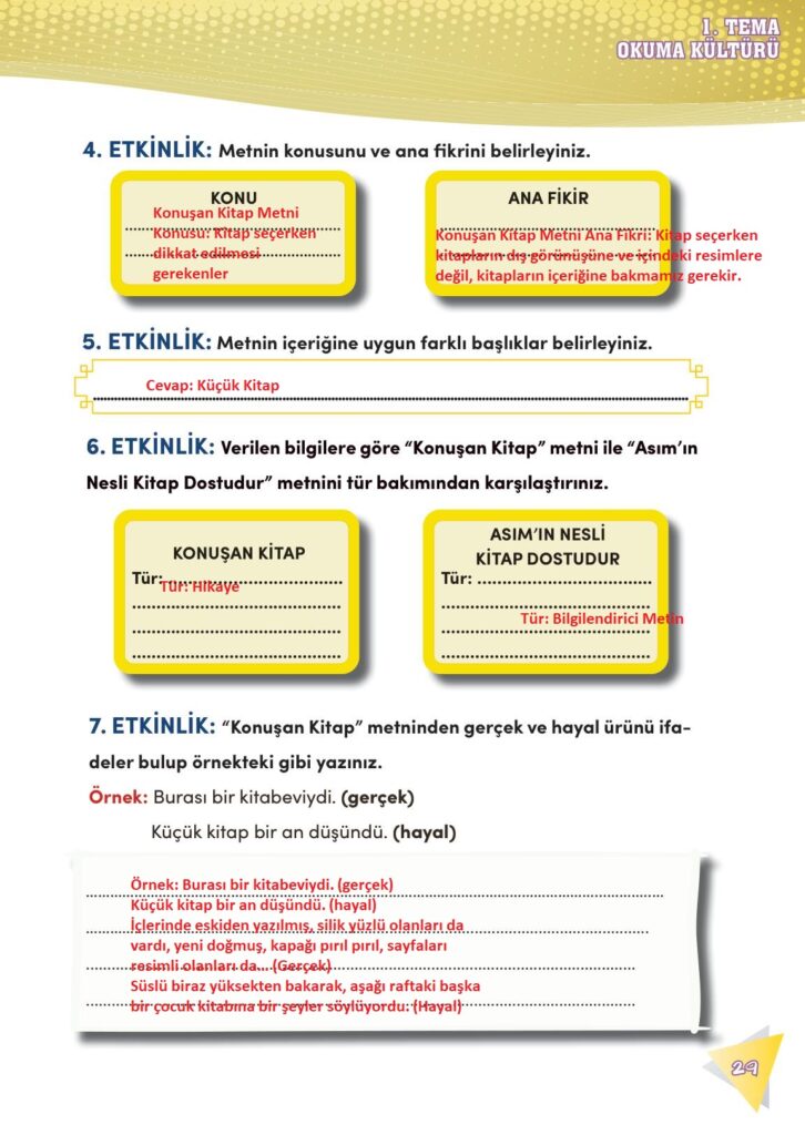 4. Sınıf Türkçe Meb Yayınları Sayfa 29 Cevapları / Cevabı