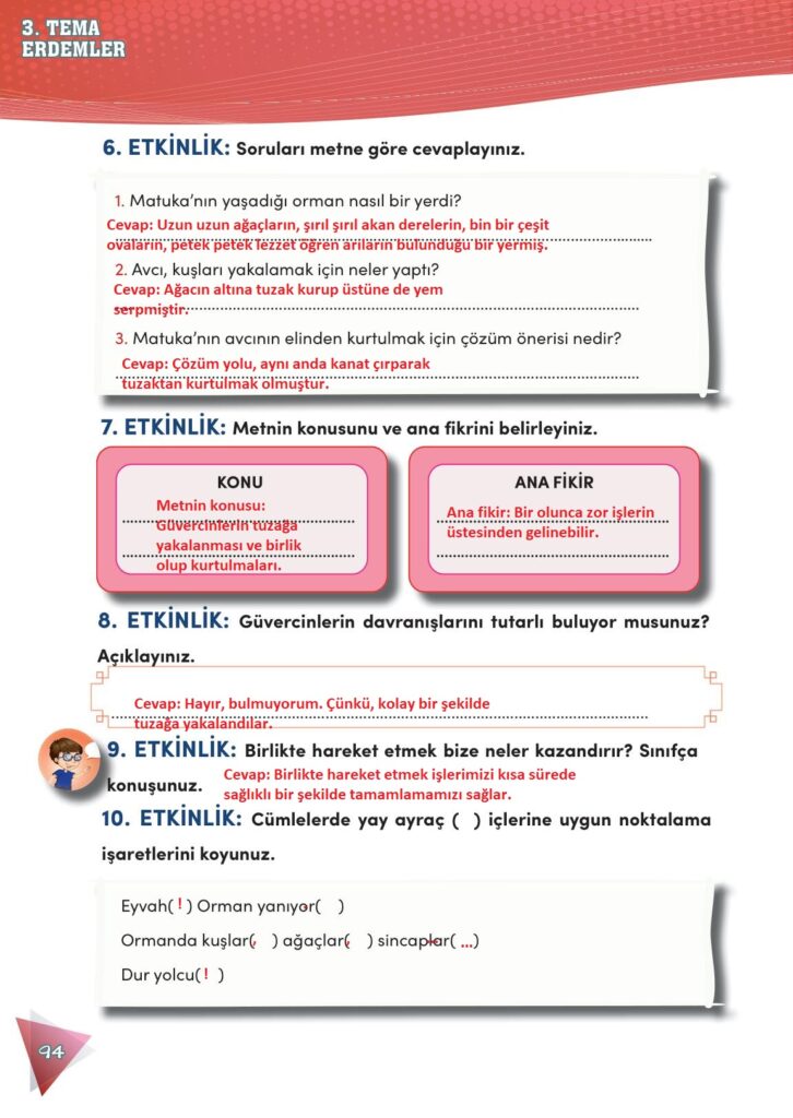 4. Sınıf Türkçe Meb Yayınları Sayfa 94 Cevapları / Cevabı