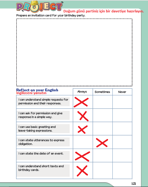 5. Sınıf İngilizce Meb Yayınları Sayfa 121 Cevapları / Cevabı