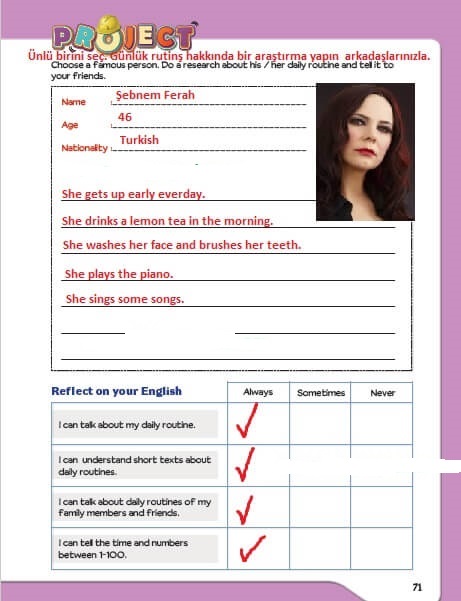 5. Sınıf İngilizce Meb Yayınları Sayfa 71 Cevapları / Cevabı