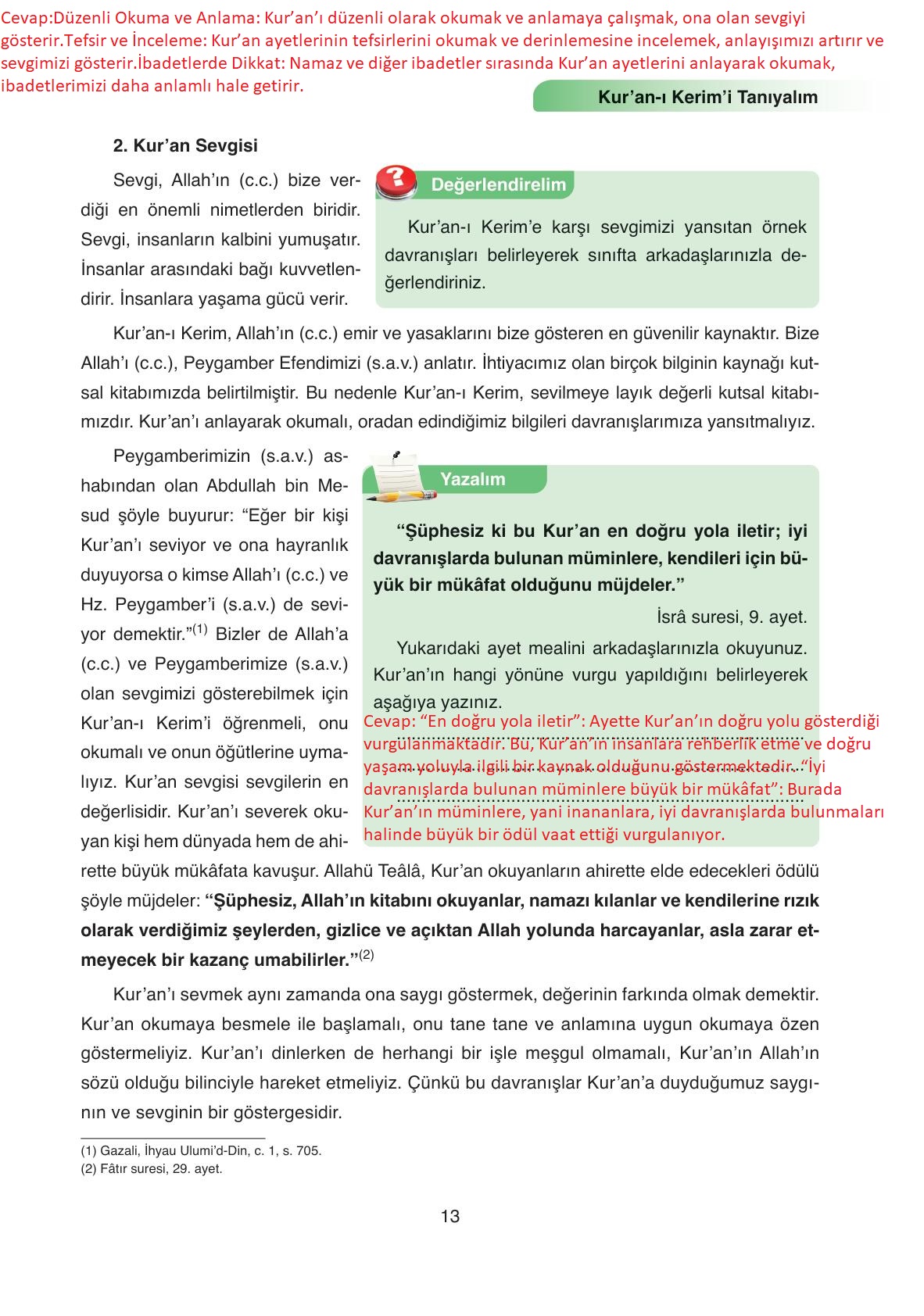 5. Sınıf Kuran-ı Kerim Ders Kitabı Ata Yayıncılık Sayfa 13 Cevapları