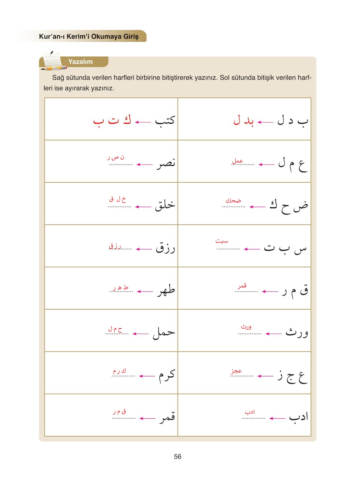5. Sınıf Kuran-ı Kerim Ders Kitabı Ata Yayıncılık Sayfa 56 Cevapları