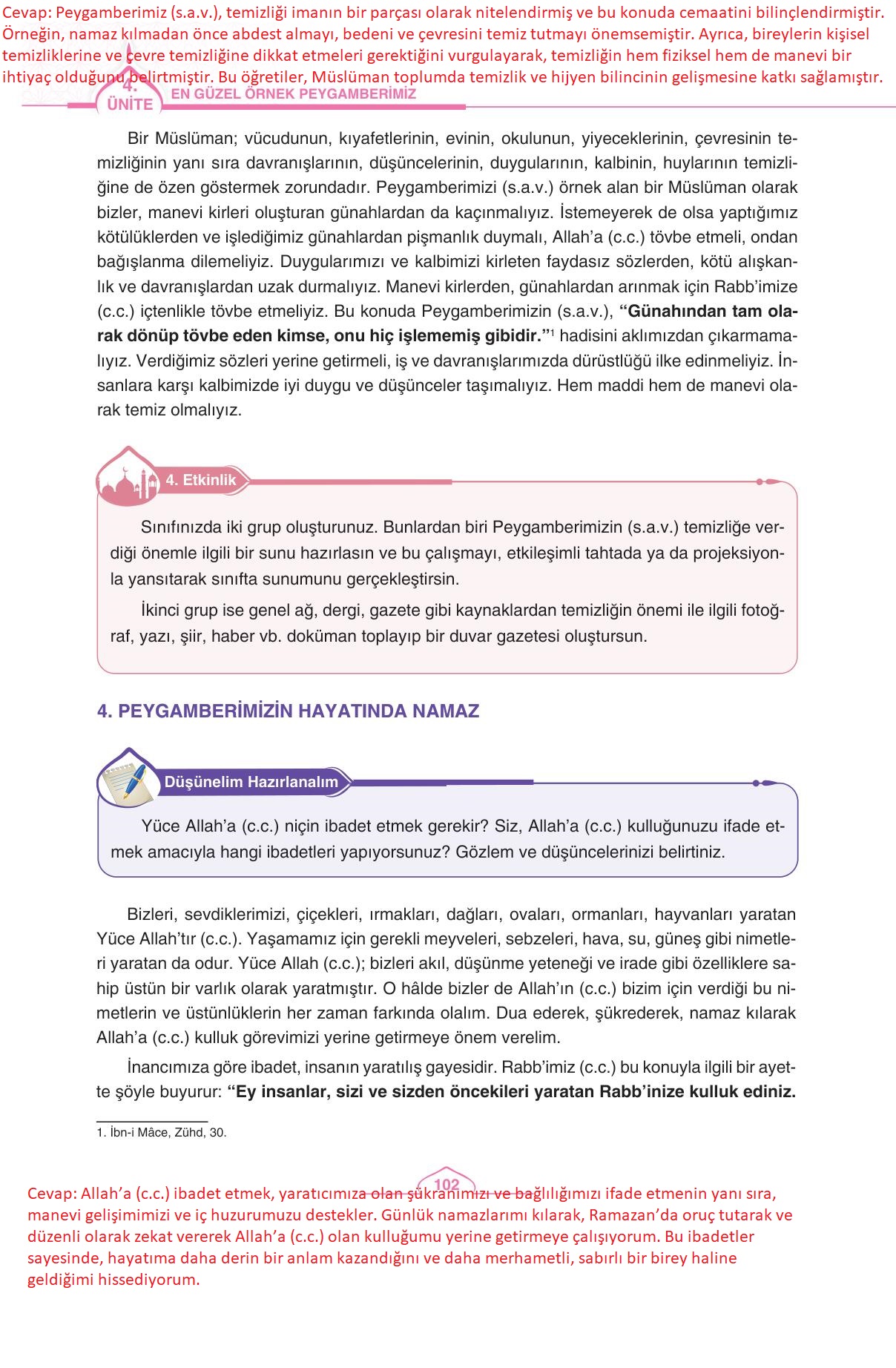 5.sınıf peygamberimizin hayatı ders kitabı sdr dikey yayıncılık sayfa 102 cevap anahtarı cevabı sayfa olarak çözümlerini yanıtları sizler için sunduk. Tüm ders kitabı cevapları gelecek yıl yine sitemizde olacak.