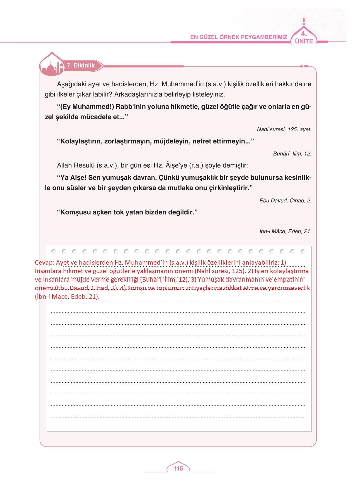 5.sınıf peygamberimizin hayatı ders kitabı sdr dikey yayıncılık sayfa 115 cevap anahtarı cevabı sayfa olarak çözümlerini yanıtları sizler için sunduk. Tüm ders kitabı cevapları gelecek yıl yine sitemizde olacak.