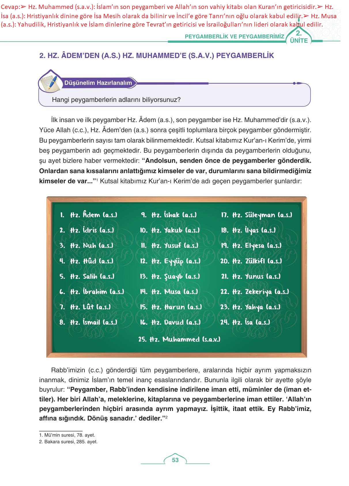 5.sınıf peygamberimizin hayatı ders kitabı sdr dikey yayıncılık sayfa 53 cevap anahtarı cevabı sayfa olarak çözümlerini yanıtları sizler için sunduk. Tüm ders kitabı cevapları gelecek yıl yine sitemizde olacak.