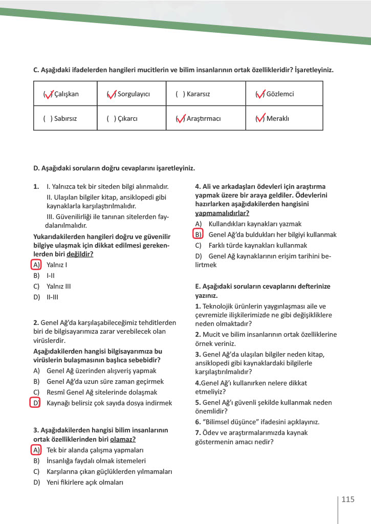 5. Sınıf Sosyal Bilgiler Meb Yayınları Sayfa 115 Cevapları