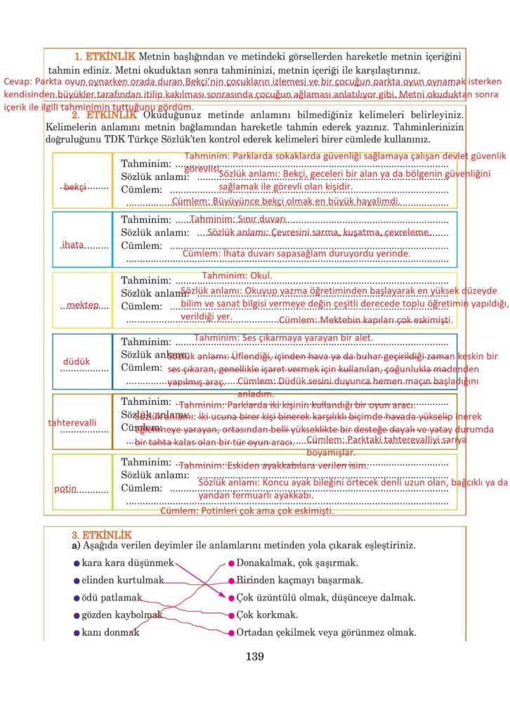 5. Sınıf Türkçe Sayfa 139 Cevapları Anıttepe Yayıncılık