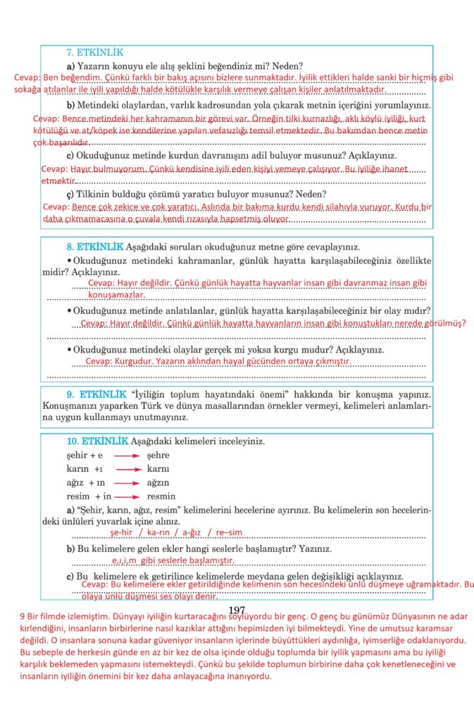5. Sınıf Türkçe Sayfa 197 Cevapları Anıttepe Yayıncılık