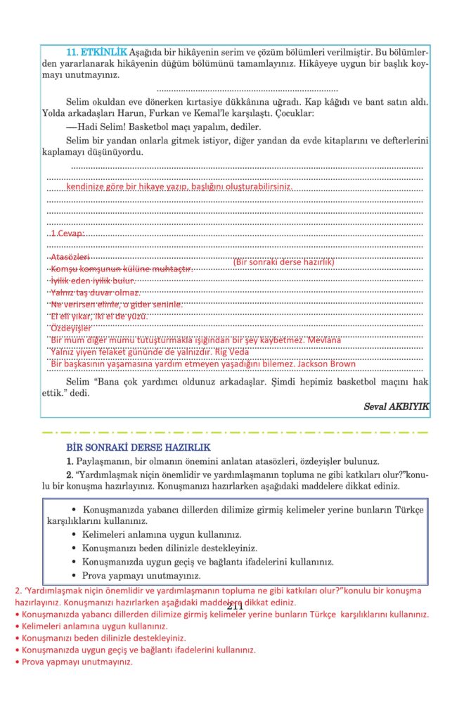 5. Sınıf Türkçe Sayfa 211 Cevapları Anıttepe Yayıncılık
