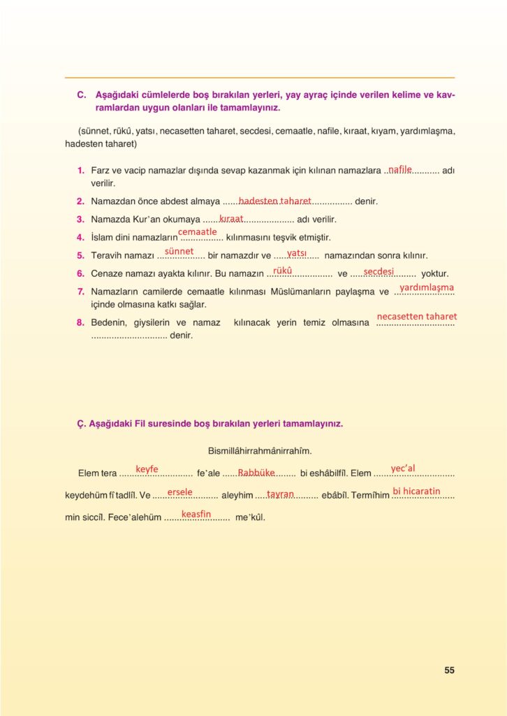 6.Sınıf Din Fcm Yayıncılık Sayfa 55 Cevapları / Cevabı