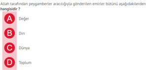 6. Sınıf Din Kültürü Temel Değerlerimiz Testleri Çöz Online