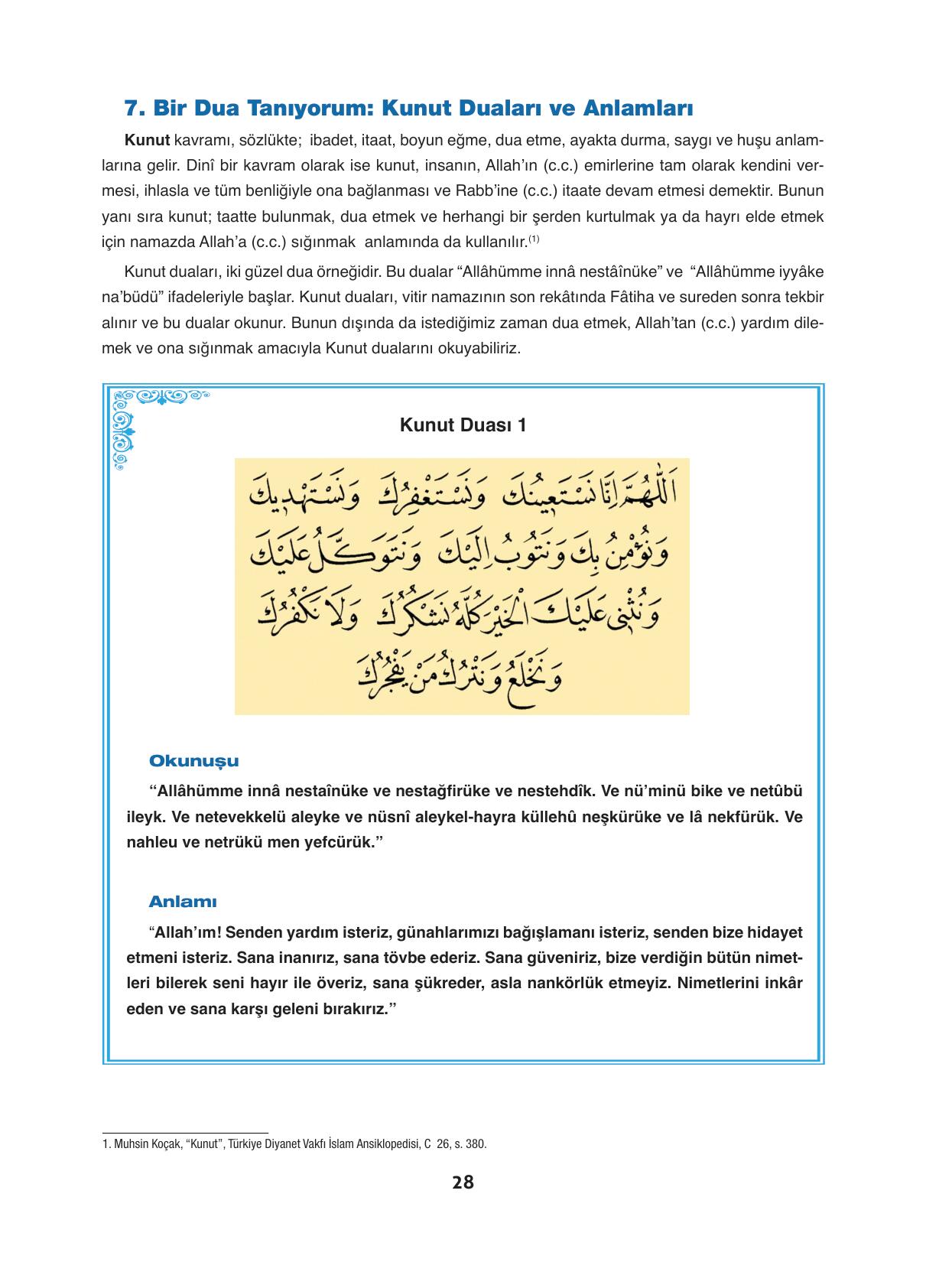 6. Sınıf Din Kültürü ve Ahlak Bilgisi Ders Kitabı Cevapları Dörtel Yayınları Sayfa 28 Cevapları