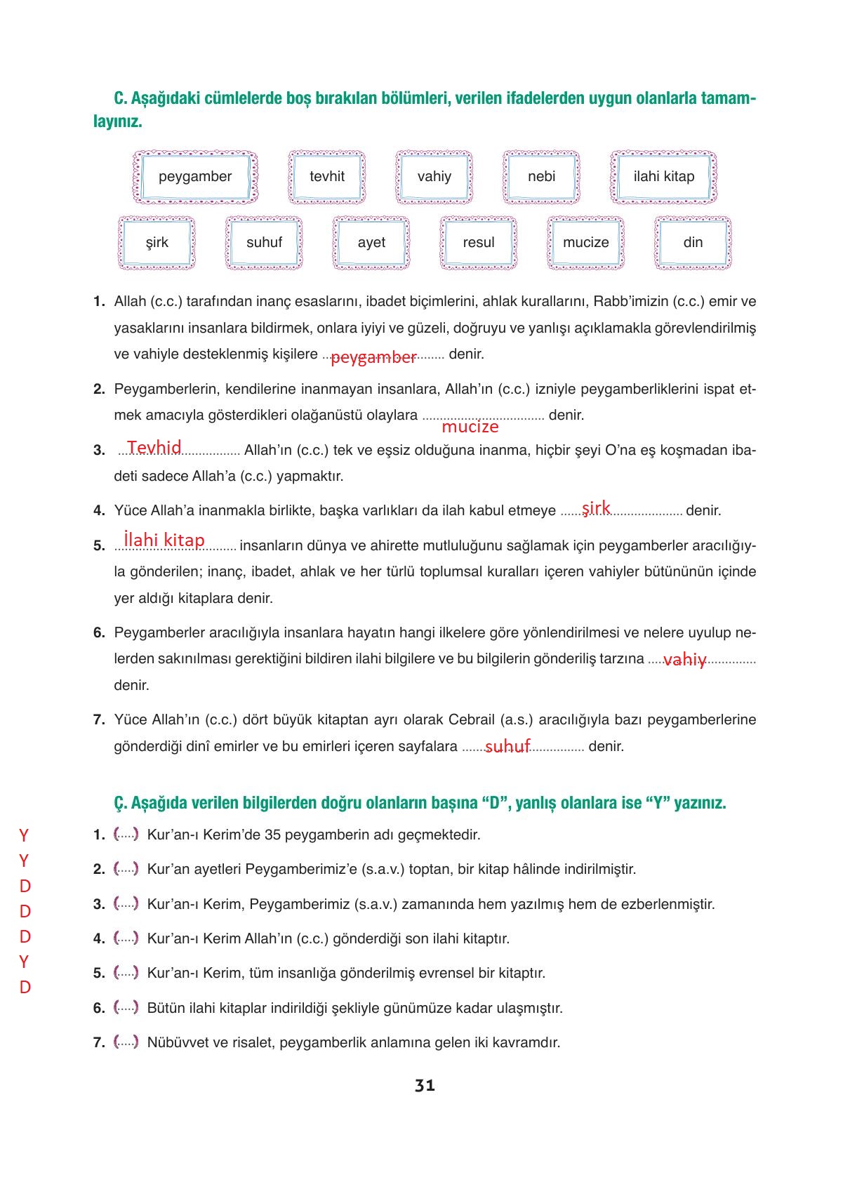 6. Sınıf Din Kültürü ve Ahlak Bilgisi Ders Kitabı Dörtel Yayınları Sayfa 31 Cevapları