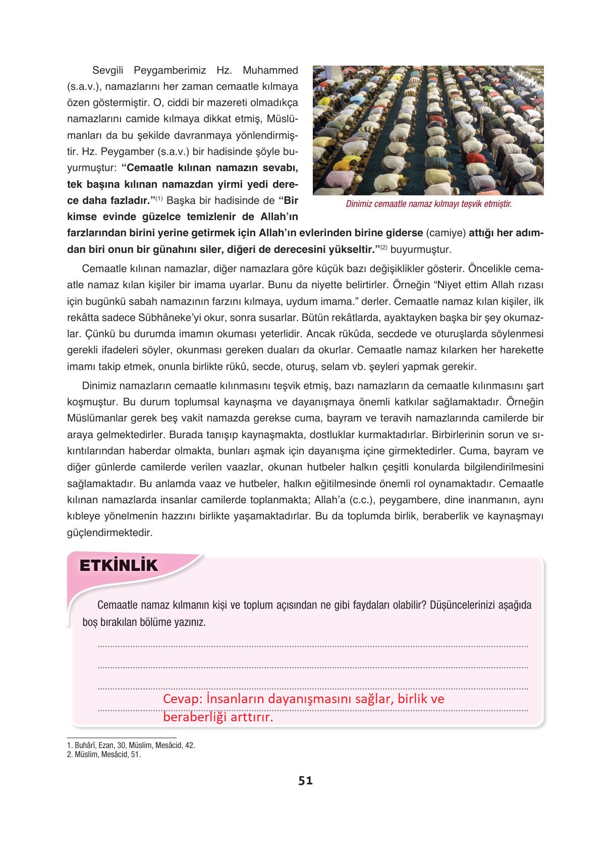 6. Sınıf Din Kültürü ve Ahlak Bilgisi Ders Kitabı Dörtel Yayınları Sayfa 51 Cevapları